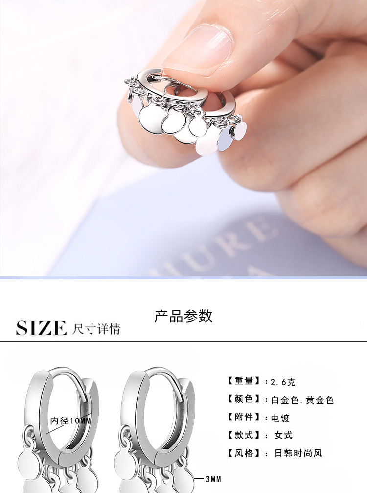 Disc tassel earrings super fairy net red design ear buckle female simple fashion personality short earrings ear buckle copper Korean